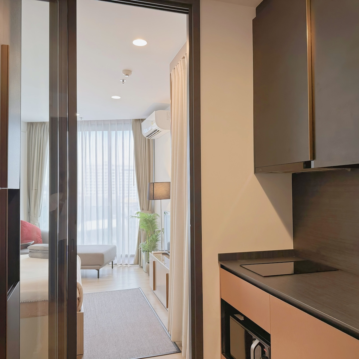 Camera di 60 mq con 2 camere da letto, 2 bagni e 1 cucina - Letto king-size comodo per 2 persone (con bagno privato) - Letto matrimoniale comodo per 2 persone - Un divano normale per 1 persona in più - Una vasca da bagno privata nella zona del balcone - Asciugamani e articoli da bagno forniti - Frigorifero, piano cottura, forno a microonde, bollitore elettrico - Pentole e padelle, piatti, posate, tazze e bicchieri da vino - Smart TV (accesso ad app come Netflix e YouTube Premium) - Internet ad alta velocità (500/500 Mbps)