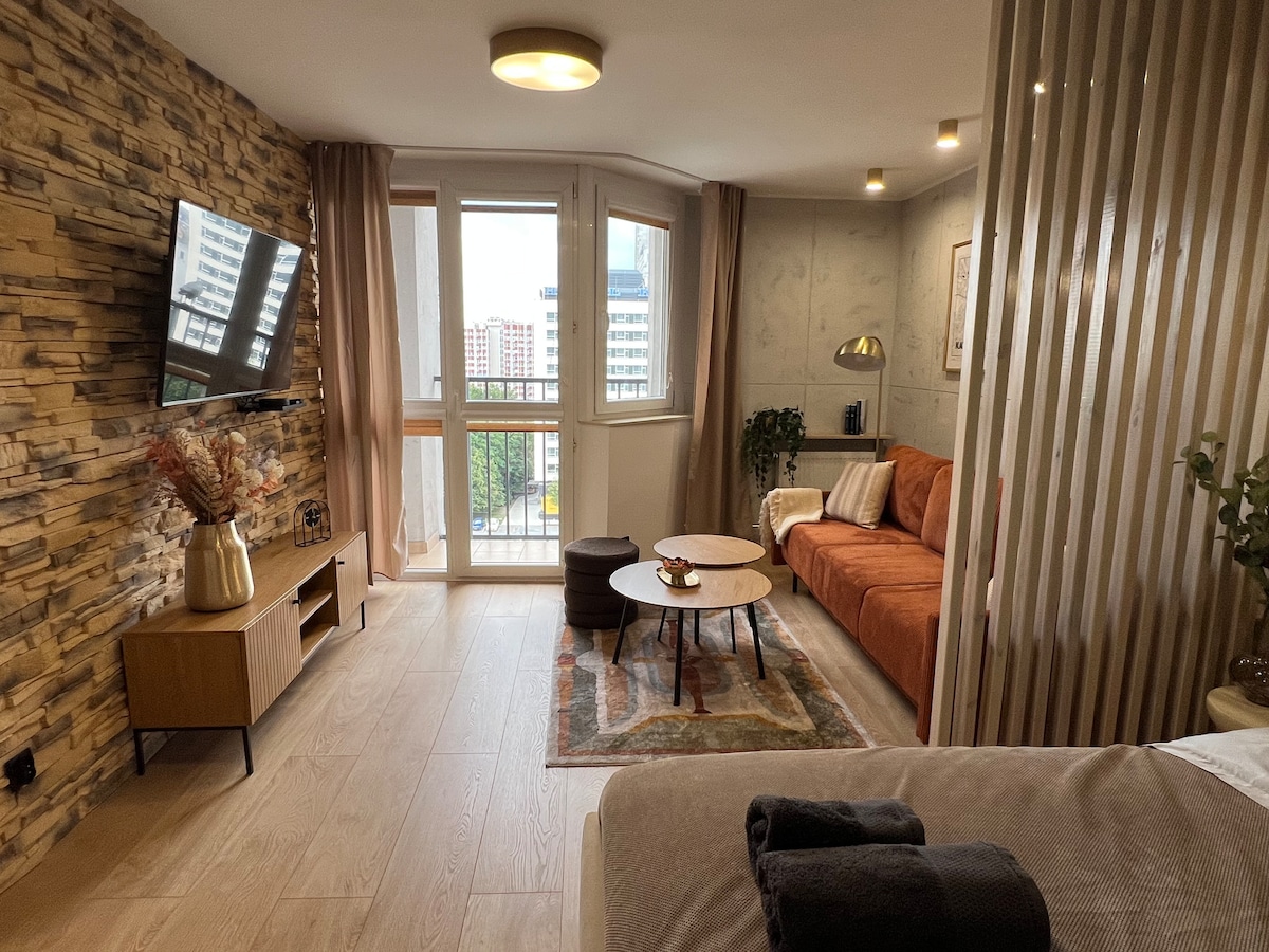 Cozy, elegant, and fully equipped apartment by Park Slaski, 10 min walk to the Silesian Stadium. If you want to spend the night close to the city but without the city noise, that's your place. Calming views from the bedroom windows, a spacious balcony to have a drink outside, comfy beds, a kitchen with all the necessities and an elegant bathroom will ensure a pleasant stay. Parking is possible along the street by the building or in an underground garage.