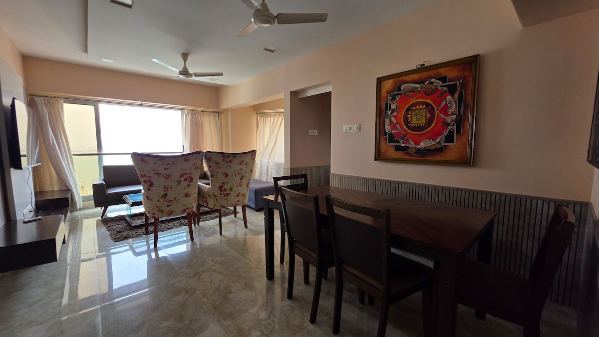 Scopri il fascino di South Bombay! Il nostro spazioso appartamento con 2 camere da letto offre una splendida vista sull'iconico Sea Link di Mumbai e sulla strada costiera direttamente dalla finestra. Progettato con cura per offrire lusso, comfort e servizi moderni, è perfetto per famiglie, amici o viaggiatori d'affari. La cucina completamente attrezzata include tutti gli elettrodomestici essenziali, per farti sentire a casa anche durante i soggiorni brevi. Situato in posizione comoda vicino alla stazione della metropolitana, garantisce un facile collegamento con tutta la città.