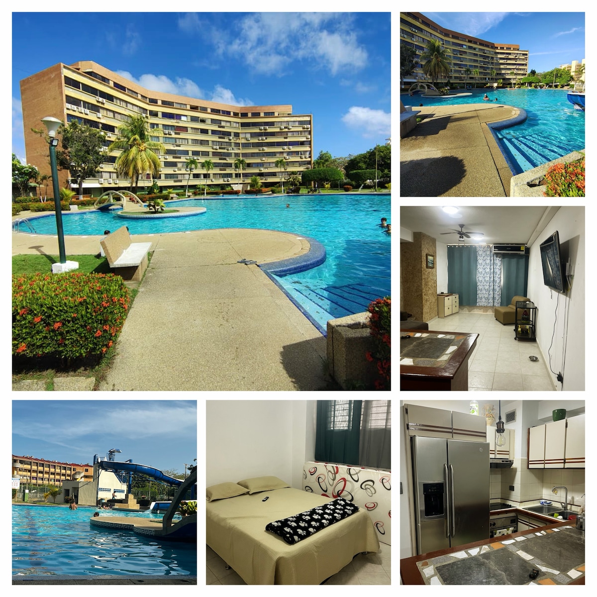 Relájate con toda la familia en este alojamiento donde la tranquilidad se respira. Apartamento de 1 habitación, 1 baño, 1 sofa cama y 1 puesto de estacionamiento. Conjunto Residencial cerrado y amplio con seguridad las 24 horas, frente al embarcadero de La Pergola desde donde sale lanchas a las playas más lindas de Higuerote, piscinas (adultos - niños), parque infantil, canchas de tenis, mesa de ping pong, área para parrillas, caminerías con áreas verdes, cancha de usos multiples.