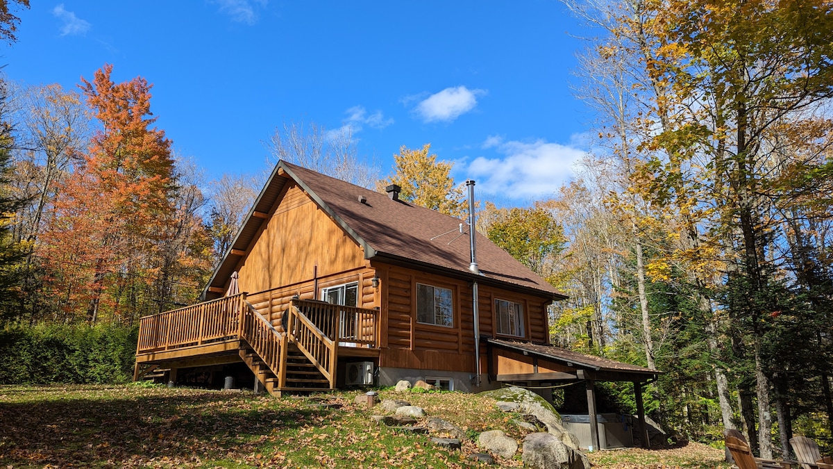 Grand chalet rustique et chaleureux : bord de l’eau, spa, foyer à bois intérieur et extérieur. Un lieu idéal pour relaxer en couple, en famille ou entre amis. Laissez-vous immerger dans la nature des Laurentides et venez profiter des baignades, kayaks et randonnées. A rustic and warm wooden chalet : waterfront, spa, wood-burning fireplace. Ideal place to relax in couple, with your family or friends. Be immersed in the nature of the Laurentides and enjoy the swimming, kayaking and hiking.