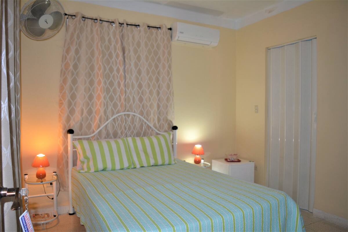 Offriamo ai nostri ospiti una casa coloniale in ottime condizioni e potranno godere di disimpegno, soggiorno, secondo soggiorno, camera da letto con bagno interno, corridoio e terrazza. Disponiamo di due camere, con bagno privato. La camera #1 ha anche un letto matrimoniale e un letto singolo, la camera #2 ha due letti singoli, entrambe le camere sono dotate di aria condizionata, ventilatore, finestra, prese 110 V e 220 V, acqua fredda e calda 24 ore, asciugacapelli, minibar con bevande. Ammettiamo animali domestici e disponiamo di strutture per bambini.