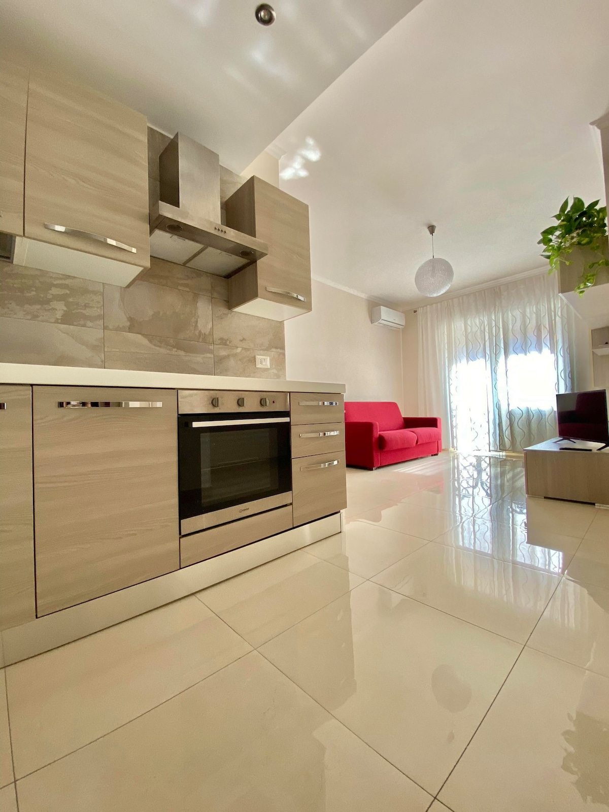 Questo nuovissimo e grazioso appartamento si trova al quarto piano di una recentissima costruzione dotato di ascensore e di tutti i confort. La casa è così composta: - soggiorno con comodo divano letto e tv - angolo cottura dotato di ogni accessorio - 1 letto matrimoniale queen-size - 1 bagno con ampia e comoda doccia - 1 balcone chiuso con una vetrata scorrevole - Alla casa è compreso un posto auto coperto ad uso esclusivo degli ospiti.