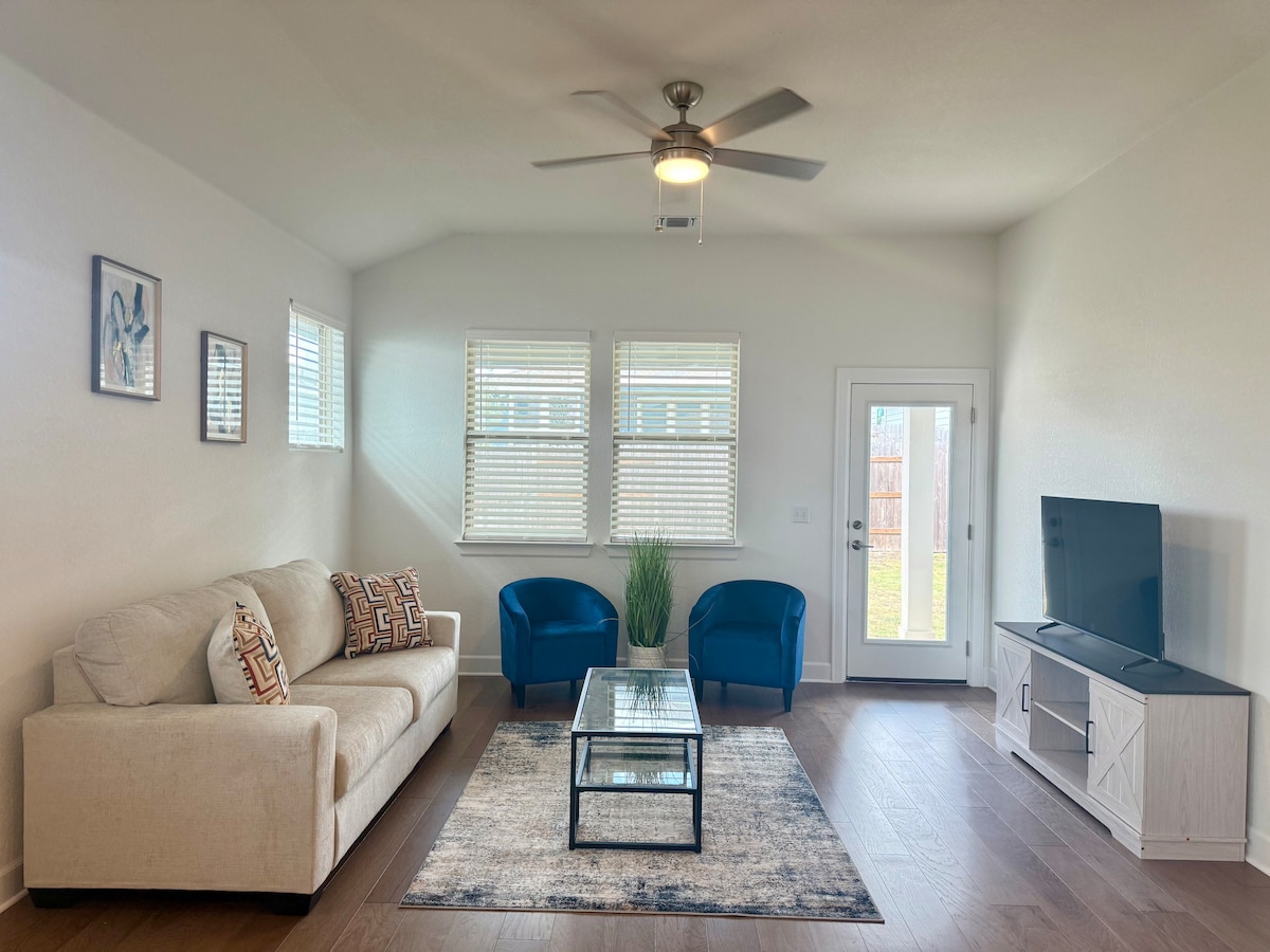 Torna indietro nel tempo e scopri l'eleganza del design moderno di metà secolo nella nostra elegante casa con 3 letti e 2 bagni. Situato a pochi minuti dal Circuito delle Americhe (COTA) e da Tesla, questo rifugio offre la combinazione perfetta di comfort e comodità. Rilassati nell'ampia zona giorno, completa di arredi moderni. Immergiti nella cucina glamour. Dopo una giornata di esplorazione, rilassati in una delle confortevoli camere da letto, ognuna progettata con cura. Che tu stia facendo il tifo per le gare a COTA o in tour con Tesla.