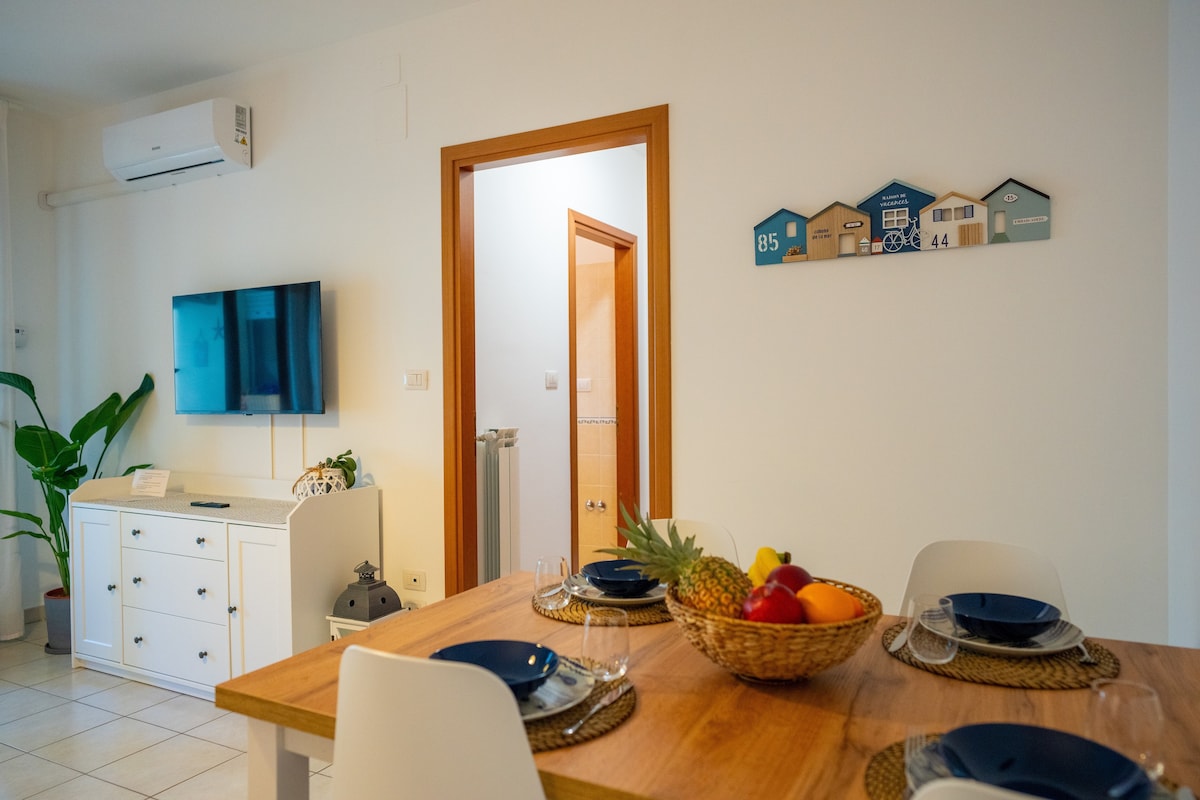 L'appartamento di recente costruzione è situato a 5 metri dalla spiaggia più vicina, dotato di un ampio giardino ad uso privato con gazebo è l'ideale per le famiglie. A due passi dalla ciclabile e dall'inizio della pineta Catucci l'abitazione è dotata di tutti i comfort e delle comodità necessarie per una piacevole vacanza. Vi è inoltre la possibilità di usufruire di un posto auto privato all'interno dell'area condominiale e di utilizzare delle bici convenzionate su richiesta con la struttura.