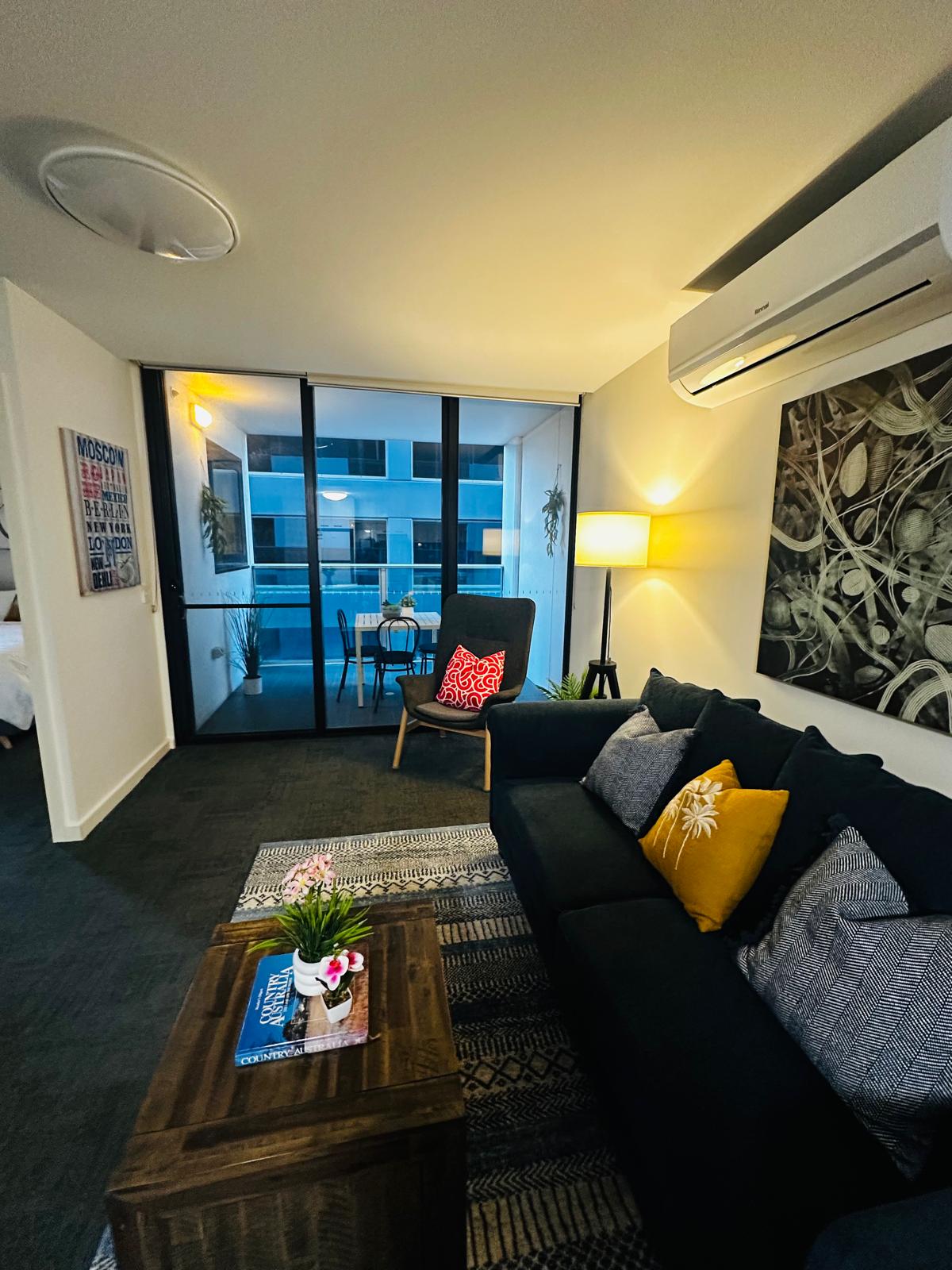 Experience elevated city living in this stylish, modern apartment in the heart of Adelaide CBD. Thoughtfully designed for comfort and convenience, this light-filled space is perfect for business travellers, professionals, couples, and mid-stays. Walk to cafés, restaurants, tram stops, and key city attractions. 1 King bed and 1 queen bed (additional foldable single bed available on request). One reserved free parking space is available in the adjacent car park building (requires pre-booking).
