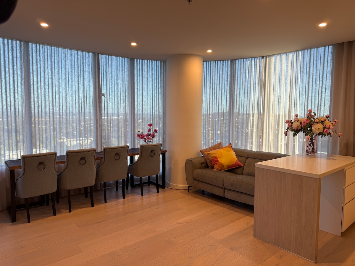 NUOVO: 2 camere da letto, 2 bagni e 1 stanza in più per studio/lavoro/pianoforte. È un perfetto appartamento in alto, esposto a nord, in cima alla Sky Gardern Golden Tower A. Questo appartamento di lusso unico offre ampi spazi a pianta aperta con servizi di livello internazionale, perfetti per famiglie e viaggiatori che desiderano rilassarsi, andare in vacanza o fare viaggi di lavoro. Pulizia professionale di livello alberghiero a 5 stelle. Situato proprio sopra il quartiere dello shopping di New Glen Waverley, con ristoranti di prima classe e negozi al dettaglio letteralmente a portata di mano, la stazione ferroviaria è proprio al piano di sotto!