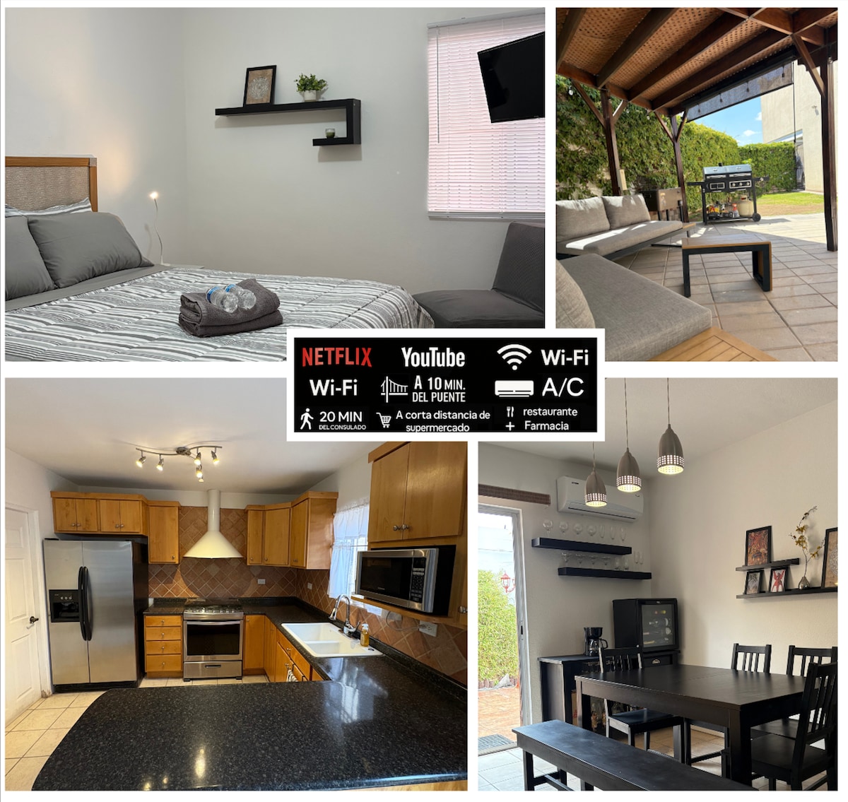 Casa Marbella ti offre un piacevole soggiorno per riposare e divertirti con la famiglia e gli amici. Ottima posizione in una frazione privata e sicura, a soli 15 minuti dal consolato americano. Si trova dietro la clinica Lourdes, a pochi metri dal confine per l'attraversamento internazionale. Vicino a Plaza Sendero, stazione di servizio, Oxxo, negozi di alimentari.
