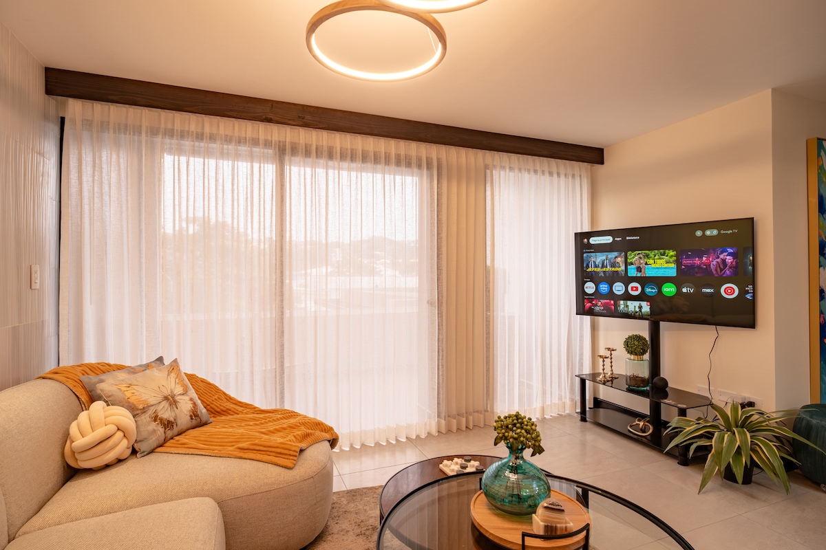 ✨ Appartamento moderno e accogliente nel centro commerciale Las Ramblas, Santa Tecla Goditi un soggiorno elegante e confortevole in questo appartamento con 2 camere da letto e 2 bagni con divano letto, cucina completamente attrezzata, aria condizionata e lavanderia intelligente. Può ospitare da 2 a 6 persone (bambini inclusi). Sicurezza h24. Posizione privilegiata: a 3 minuti da La Gran Vía e Multiplaza, a 20 minuti da El Boquerón, a 30 minuti dalla spiaggia. Perfetto per: • 2 o più ospiti • Famiglie, gruppi o amici • Viaggi di lavoro o lavoro da remoto
