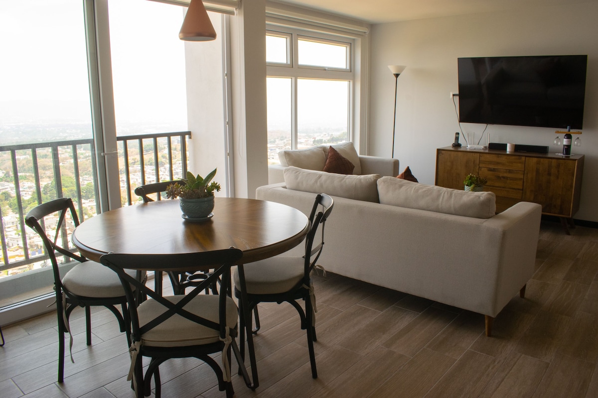 Rilassati in questo affascinante appartamento, con una vista spettacolare, mentre bevi il tuo caffè, in un alloggio elegante. Vicino ad Antigua Guatemala, a pochi minuti da San Cistobal, con molti posti per fare shopping, vicino alla città, in posizione strategica in un luogo tranquillo e molto bello. In famiglia o in coppia, speriamo di farti sentire a tuo agio, con un'esperienza di vita, puoi prendere una tazza di caffè mentre guardi la terrazza e la splendida vista su tutta la città.