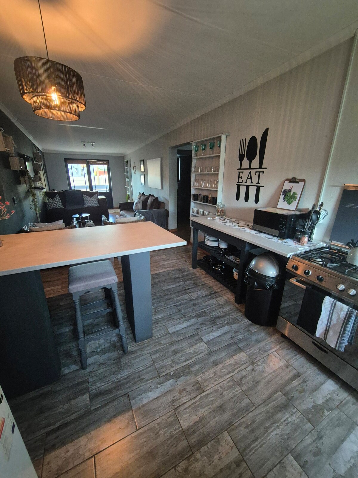This stylish home is situated on an elevated position within a gated and patrolled security estate with magnificent views over the Clanwilliam Dam. The estate has roaming security, monitored perimeter cameras and ample boat and off street parking. The perfect home for the watersport and outdoor enthusiast. The kitchen counter doubles as a perfect place to set up your laptop to have a comfortable working space. Enjoy magnificent sunsets while having sundowners next to the 9m pool.