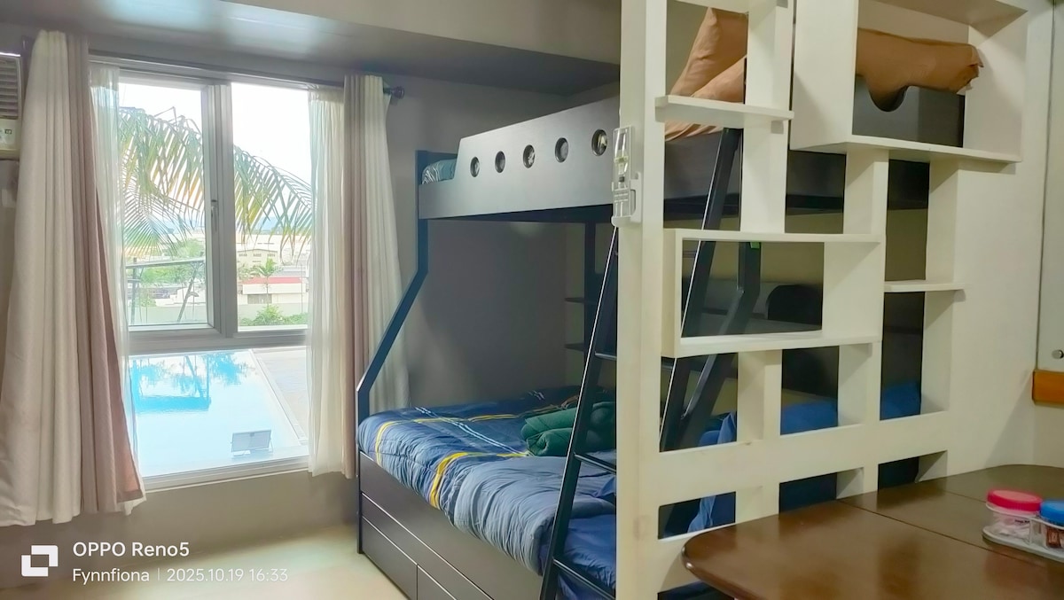 L'unità condominiale si trova a pochi passi da ristoranti, negozi, un ospedale e il centro commerciale Ayala. L'ambiente circostante è sicuro. C'è un servizio di sicurezza 24 ore su 24 e personale assegnato alla hall. Nell'edificio è presente un ascensore. L'interno dell'unità monolocale è accogliente e confortevole. È dotato di 2 letti matrimoniali. Può ospitare fino a 3 persone. Viene fornito il wifi, ideale per le chiamate via Internet e la navigazione sul web.
