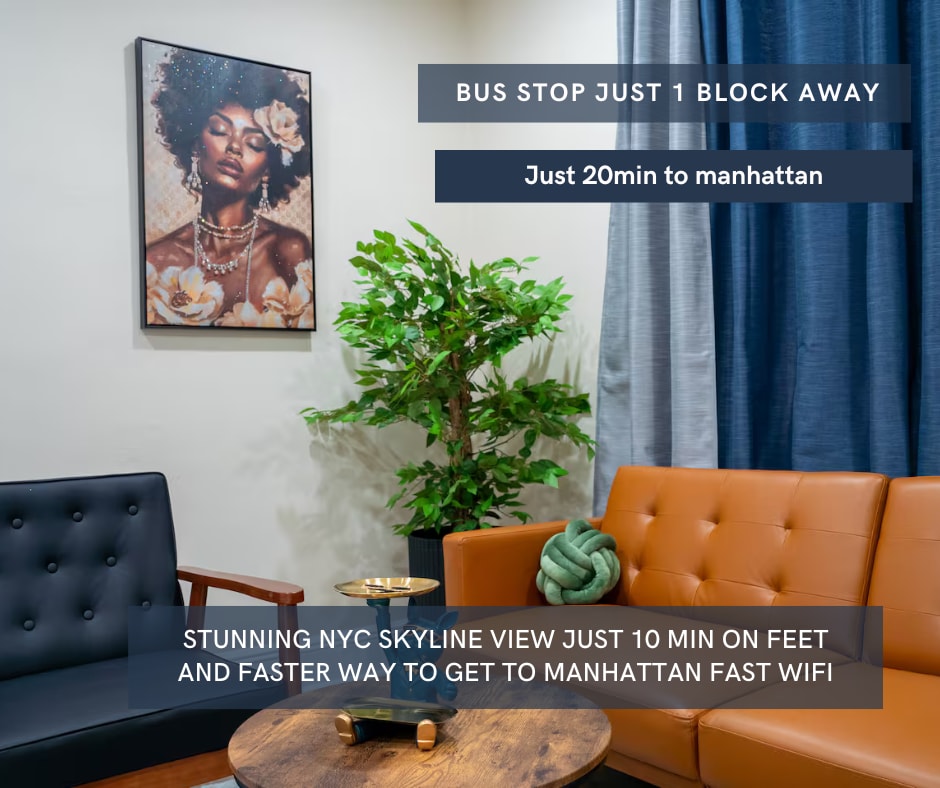 👋 Ti diamo il benvenuto a casa tua a pochi minuti da New York!🗽 Questo appartamento splendidamente ristrutturato si trova a soli 35 minuti da New York in autobus, con diverse linee di autobus raggiungibili a piedi. 🚌 Dispone di una spaziosa cucina con tutti gli elettrodomestici essenziali, tre camere da letto che possono ospitare fino a sei persone, un accogliente salotto e un ampio bagno. Il quartiere è accogliente e sicuro giorno e notte, con negozi di alimentari comodamente situati in tutto l'isolato. 🏠Una casa perfetta per il vostro soggiorno a New York!