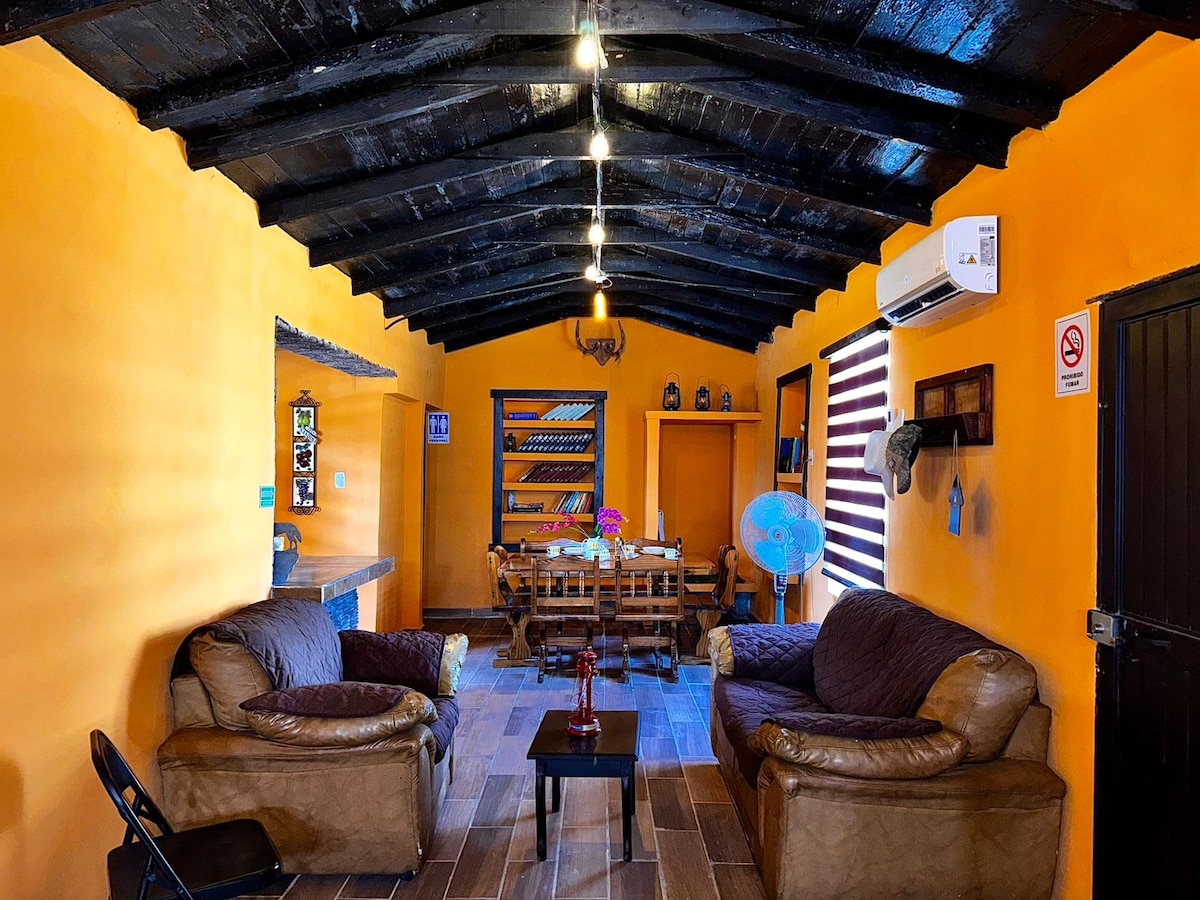 Se sei in cerca di un posto accogliente e tranquillo con un tocco rustico, questo chalet è perfetto per te. Situato nell'esclusiva Colonia Americana a Nueva Rosita, è l'ideale per riposare, riconnettersi e godersi un soggiorno unico. Dispone di 3 posti letto: • 1 doppia • 2 letti singoli L'atmosfera è accogliente, con soffitti in legno e toni caldi che le conferiscono un tocco rustico. Inoltre, la posizione è ottima: una zona tranquilla e sicura, vicino a negozi, ristoranti e tutto ciò di cui potresti aver bisogno.