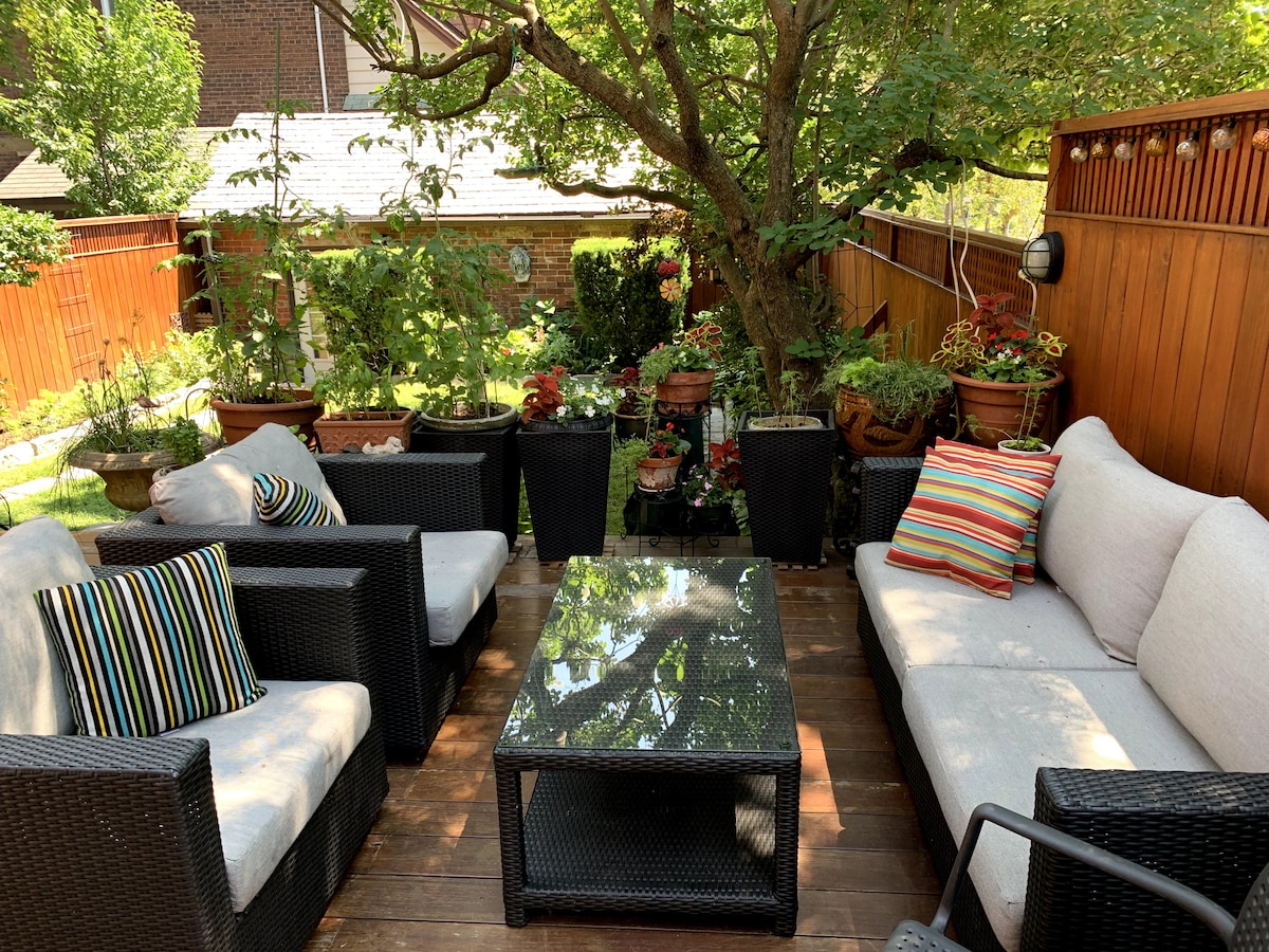 Rilassati con un bicchiere di vino nel tuo giardino sul retro in questo romantico cottage urbano di 700 piedi quadrati su due piani privati della casa a schiera su 4 livelli di un designer appena fuori dalla striscia di Ossington. Questa oasi di tranquillità è perfetta per coppie o viaggi di lavoro, con internet ad alta velocità e spazi di lavoro flessibili. Cucina nella cucina completamente attrezzata o scopri i migliori bar e ristoranti di Toronto a pochi passi da casa. Esplora facilmente la città a piedi, e approfitta del trasporto pubblico con una fermata proprio davanti alla porta di casa.