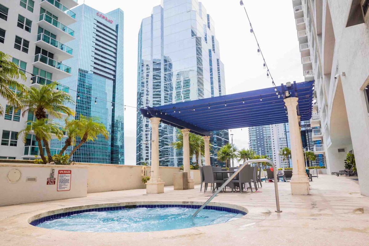 Splendido appartamento con una camera da letto situato nella zona migliore di Brickell, a pochi minuti dal centro di Brickell e dal Mary Brickell Village, con ristoranti, bar, negozi e intrattenimento. Informazioni su questo spazio - Circa 825 piedi quadrati di spazio pieno di luce naturale con splendida vista sulla baia e sulla città e un ampio balcone privato con tavolo da pranzo e ampio divano da patio - Wi-Fi ad alta velocità -1 posto auto assegnato gratuito - Piscina, jacuzzi, bagno turco, sala giochi, palestra all'avanguardia e centro business