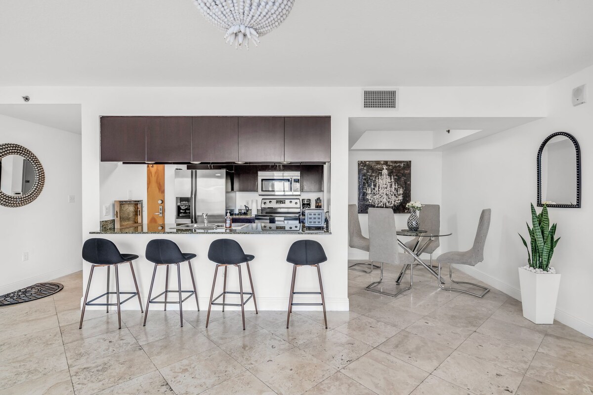 Vivi il lusso al 48° piano in questa suite con due camere da letto dal design raffinato, che offre una vista mozzafiato sull'acqua e l'accesso gratuito ai servizi dell'hotel "The W Miami". Goditi la piscina più grande di Miami, le strutture termali e altri servizi a 5 stelle. Inoltre, avrai accesso a un parcheggio gratuito (dall'altra parte della strada), che normalmente costa 60 $ al giorno! Questa suite, che offre un'esperienza indimenticabile a Miami, è orgogliosamente offerta da SuCasa Vacay. Nome dell'alloggio: SuCasa Vista