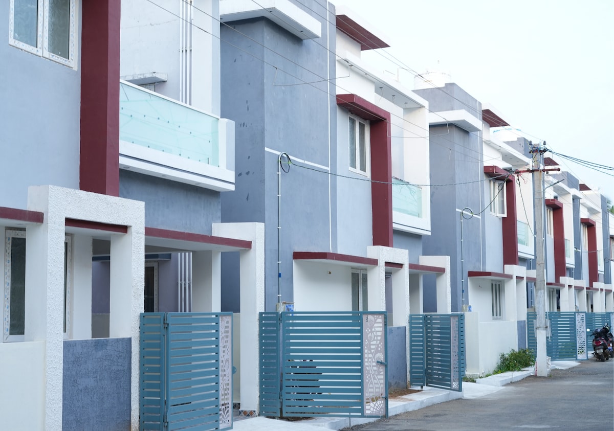 Confortevole villa a Saravanampatti, Coimbatore, ideale per famiglie o ospiti in viaggio di lavoro! 3 camere da letto, WiFi, aria condizionata, balcone e smart TV. Zona tranquilla vicino a parchi IT con parcheggio gratuito e cucina completa. Guida con i migliori ristoranti e luoghi d'interesse locali inclusi. Goditi un soggiorno pulito e sicuro: invia un messaggio per consigli o richieste personalizzati!