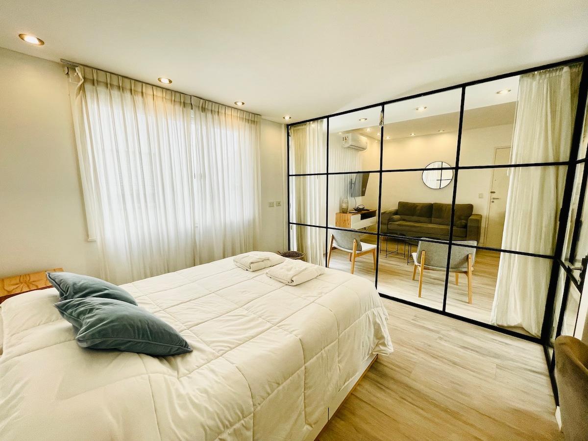 Nuovo edificio di 10 piani • 1 camera da letto con bagno privato con eccellente luce naturale, aria condizionata caldo/freddo + armadio completo • Bagno completo con vasca e servizi igienici • Soggiorno con divano letto matrimoniale e aria condizionata caldo/freddo • Balcone terrazzato con vista aperta sul lato opposto • Cucina attrezzata per soggiorni di breve o lunga durata • Accesso elettronico sia all'ingresso dell'edificio che all'appartamento • Self check-in, ideale se il tuo volo arriva nelle prime ore