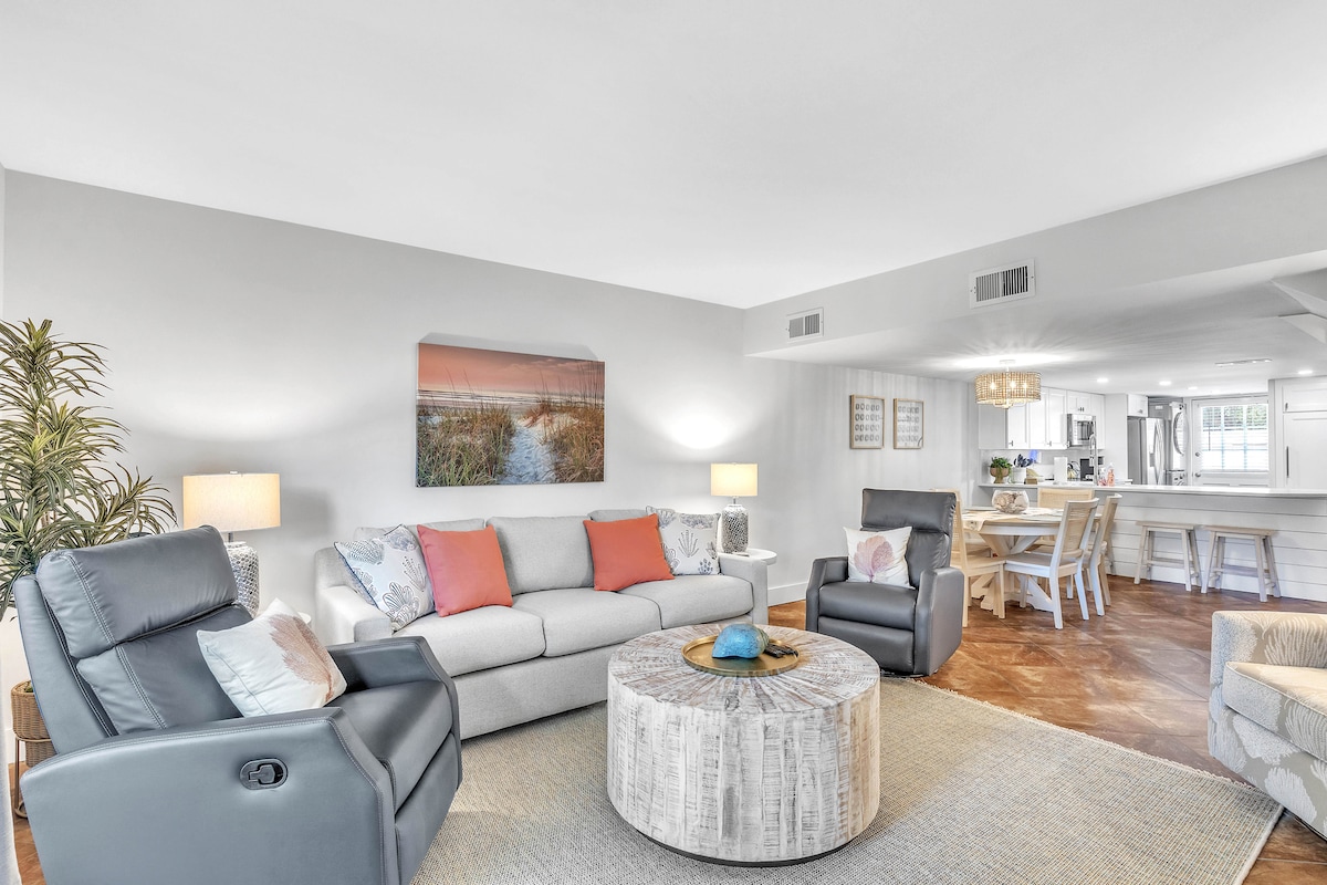 Beautifully remodeled condo just steps from Hilton Head’s main beach! Enjoy ocean views from your private balcony and easy walking access to restaurants, shops, and entertainment. This cozy villa features a full kitchen, bikes, and beach chairs included for your stay. Freshly updated with stylish decor, smart TVs, and modern comforts. Direct beach access on property and just a short stroll to Hilton Head’s new Celebration Park — perfect for a fun, relaxing beach vacation!