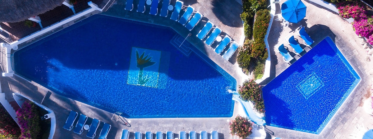 Charming, comfortable studio with loft! Located in Las Hadas Peninsula Manzanillo and perfect to live/take a break in either alone or as a couple. Enjoy gorgeous views from your balcony. Also enjoy all the common areas including restaurant, pool and the beach. Air conditioned, there is a dishwasher and washing machine… making this studio with loft comfortable.