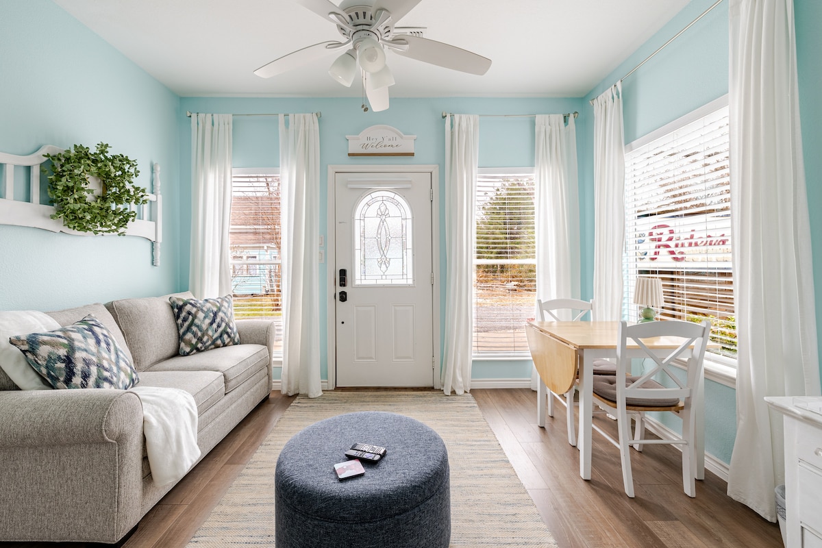 Storico con un tocco moderno! Questo accogliente cottage moderno si trova a soli cinque minuti a piedi dalla piazza del centro storico di McKinney, dove troverai negozi, ristoranti favolosi, pub, degustazioni di vini e altro ancora. Questo bellissimo cottage è stato costruito nel 1953 e vanta la ricca storia della vecchia McKinney. Completamente ristrutturato nel 2020, dispone di due camere da letto, un bagno, una cucina completa e un servizio lavanderia. Arredato con un tocco industriale, questo cottage collega il presente al passato. Immerso nel quartiere storico di McKinney, ti rilasserai con tutti i comfort moderni di casa. Dopo aver fatto shopping e cenato in centro, torna a casa per trascorrere del tempo con gli amici all'interno o sul portico posteriore. Posizione incredibile Il nostro cottage si trova a meno di 2 km dal Cotton Mill, vicino a molte altre location per matrimoni, a 1,6 km dalla Tupps Brewery e a soli 12 minuti di auto dal TPC Craig Ranch (la nuova sede del torneo di golf Byron Nelson). Le attrazioni a pochi passi includono: tutti i ristoranti, le enoteche, i pub, i bar, i negozi e i festival del centro di McKinney! I luoghi preferiti nel centro di McKinney sono The Yard (ristorante/bar con giochi all'aperto, caminetti, anche per famiglie), Ricks Steakhouse (ha anche un bar davvero fantastico situato sul retro del ristorante con musica dal vivo nei fine settimana), Harvest (cibo sano e fresco di fattoria da fonti locali) e Landon Winery. Il cottage Il nostro cottage può ospitare fino a cinque persone con un letto king-size e un letto matrimoniale con un letto estraibile sotto. C'è l'accesso WIFI ad alta velocità e tre TV con Netflix. Puoi anche collegare la TV al tuo Hulu personale, Prime Video, Ruko, HBO, ecc. La cucina è fornita di tutte le attrezzature di base per cucinare, piatti, ciotole, tazze, tazze, utensili, canovacci, macchina per il caffè, caffè, bricco per il latte, ecc. La lavanderia include una lavatrice e un'asciugatrice di grandi dimensioni. Il cortile ha una bella terrazza.