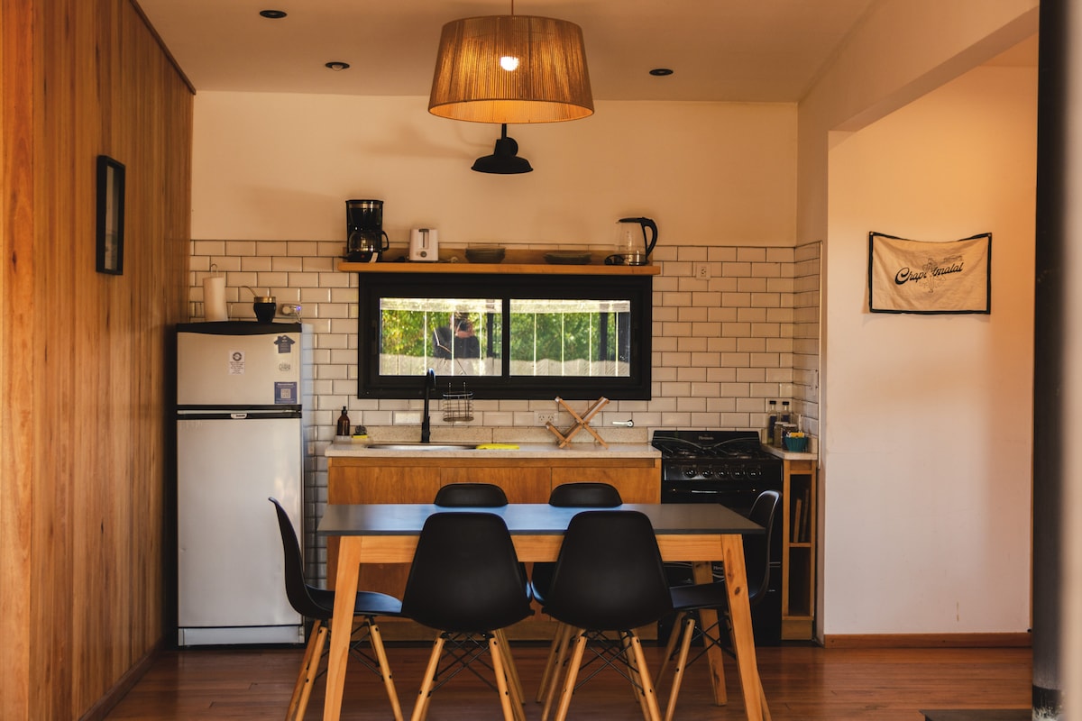 Dread Chapa Shack, a Santa Isabel, a soli 3 isolati dal mare, è il nostro posto più popolare a Chapadmalal. Ogni casa può ospitare 6 persone, con un design da surfista, cucina completa, stufa a legna, giardino e barbecue. Perfetto per famiglie o gruppi di 25+ persone che cercano spiaggia, surf e natura.