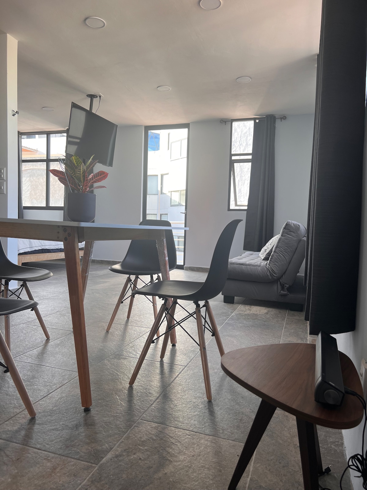 Goditi un'esperienza con stile e buon gusto in questo alloggio. Progettato appositamente per divertirsi e rilassarsi. È uno spazio ideale per coppie o viaggi di lavoro. Dispone di un balcone con un'eccellente vista panoramica, con un po' di fortuna potrai apprezzare splendidi tramonti. Abbiamo tende oscuranti per regolare l'ingresso della luce. Un ampio bagno e una cabina armadio per coccolarti con una doccia. E ti assicuriamo che avrai sempre caffè e tè per quei momenti di pace.