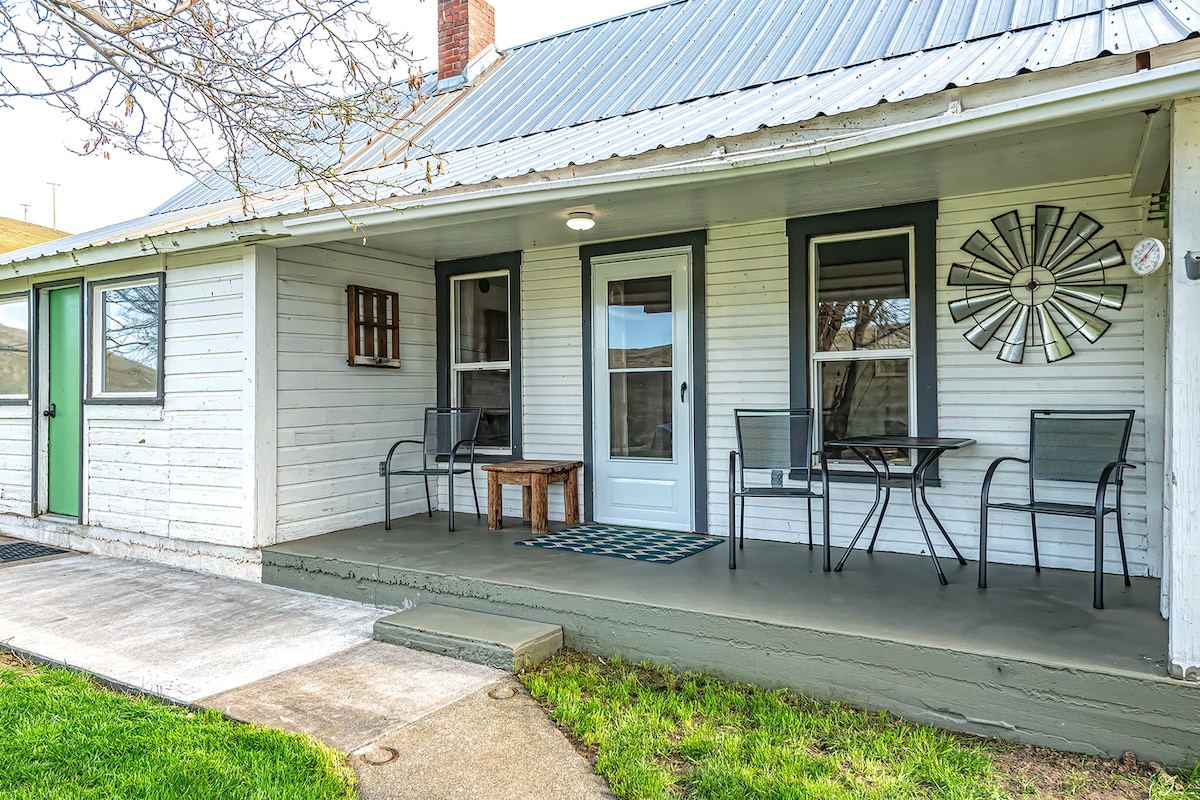 COTTAGE SPACIOUS VIEWS 1BD/1BA 660 sq ft, full kitchen, surrounded by rolling hills. Perfect for remote workers or couples getaway. Bluewood Ski Resort 20 mi. Walla Walla 35 min. Apt is in town, but feeling is Zen and rural due to being secluded, off-street. Large, fenced back yard especially pretty in spring--you and dogs will love, (shared with sun room). Local beauty is stunning all seasons. Originally an artist's studio--Meredith's good energy left for you! Stand-up desk. Gorgeous wool rug.