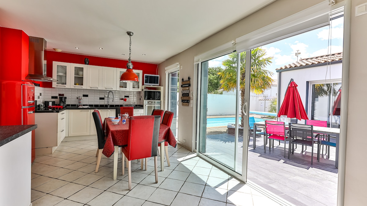 Indietro dalla folla ma a 15 minuti dalle più belle spiagge della Vandea: casa recente con arredamento originale - con giardino privato recintato con mobili da giardino e angolo grigliate. Cucina arredata/attrezzata -2 camere da letto con ciascuna un letto matrimoniale-mezzanino con divano letto e angolo TV grande schermo - giochi in legno - bagno con doccia italiana- 2 bagni- negozi a 2 km- 85 km dal Puy du Fou, eletto nel 2024 miglior spettacolo al mondo - 50 km Les Machines de Nantes- 30 km Ile de Noirmoutier -