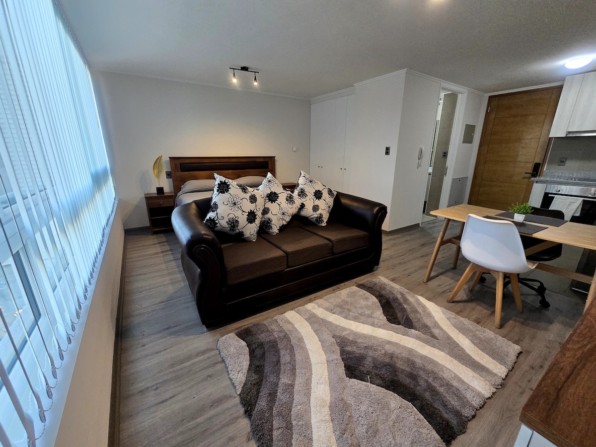 Ristrutturato Home Studio. Premiato da Airbnb! A pochi passi da tutto e vicino al centro di Concepción. Arredato con stile, attrezzato in modo che 1 o 2 persone si sentano a proprio agio e come "a casa". Letto matrimoniale, TV via cavo e WiFi, bagno e cucina attrezzata. Accesso alla lavanderia. Siamo anglofoni! Saremo felici di aiutarvi durante il vostro soggiorno nella nostra città!