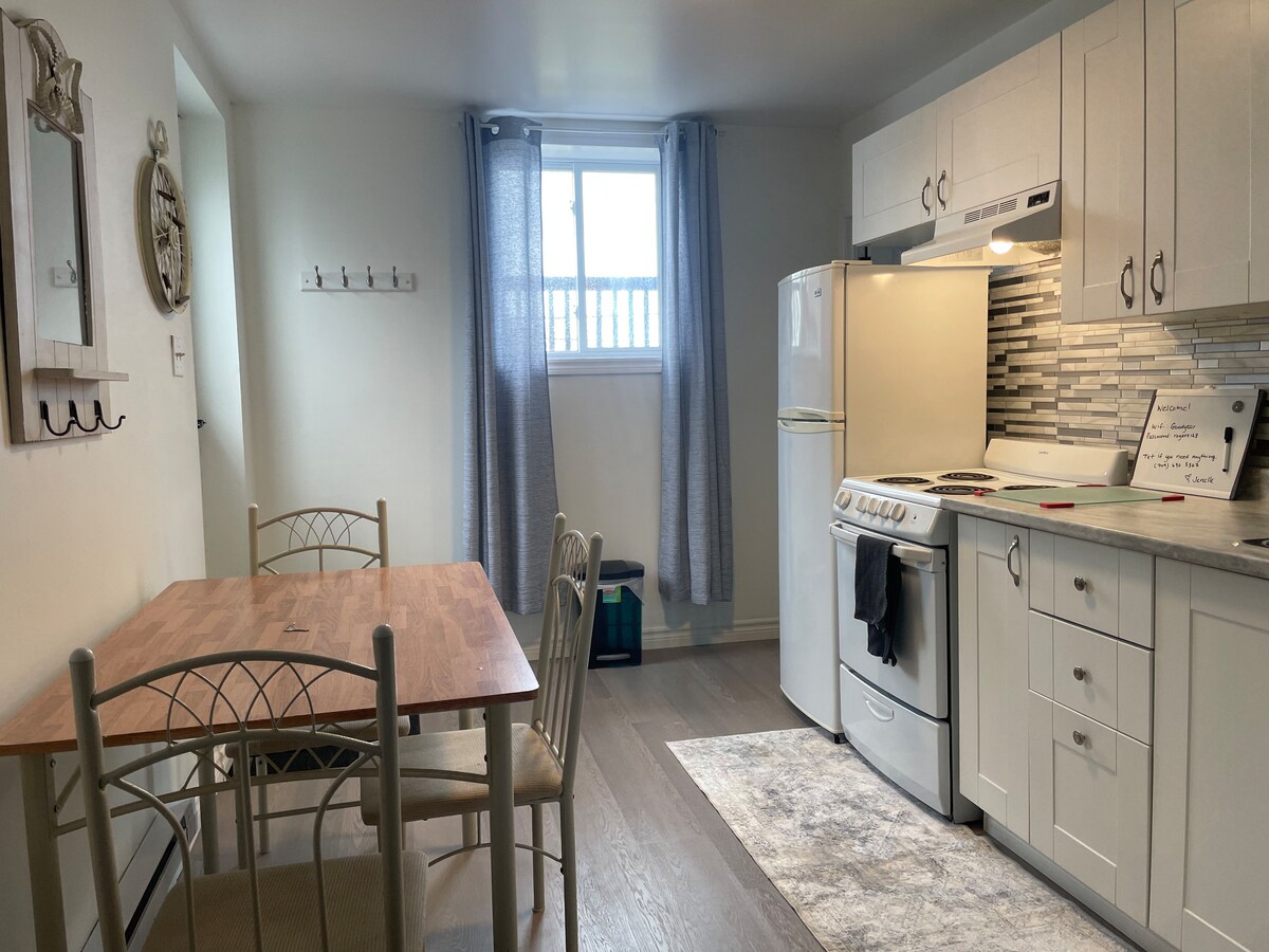 Benvenuto in questa suite con 2 camere da letto in un quartiere tranquillo, un'ottima base per visitare CBS o la grande area di St. John's! Sei solo: *a 1 minuto a piedi dalla rete di sentieri del fiume Manuels *a 3 minuti di auto dal centro di CBS, con servizi come Berg's Ice Cream, Manuels River Interpretation Centre, birreria artigianale Ninepenny, Jungle Jim's, catene di caffè e fast food, negozi e così via. *a 15 minuti di auto (e solo 1 semaforo) dal centro di St. John's *A 20 minuti in auto dall'aeroporto internazionale di St. John's