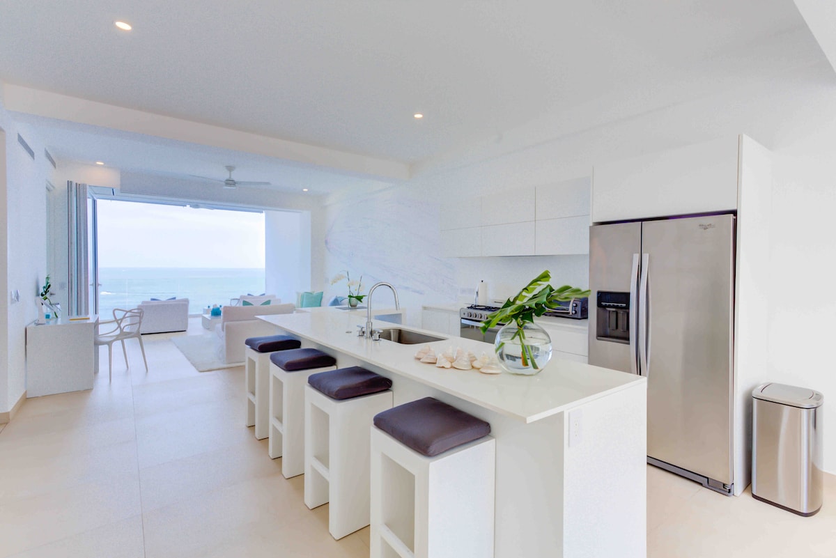 LUSSO a una rampa di scale dalla spiaggia! Goditi i TRAMONTI dalla PISCINA A SFIORO SUL TETTO o dalla TUA JACUZZI PRIVATA e le VISTE SULL'ACQUA da OGNI camera di questo attico (2 bagni completi) che si trova ad AMAPAS 353, un nuovo complesso nel cuore della Zona Romantica vicino a molti ristoranti, bar, Blue Chairs, Mantamar e Almar. L'edificio è piccolo (21 unità), ha un custode diurno (nessun segno di entrata/uscita), ascensore, palestra, cucina sul tetto con barbecue e facile accesso a tutte le attrazioni locali!