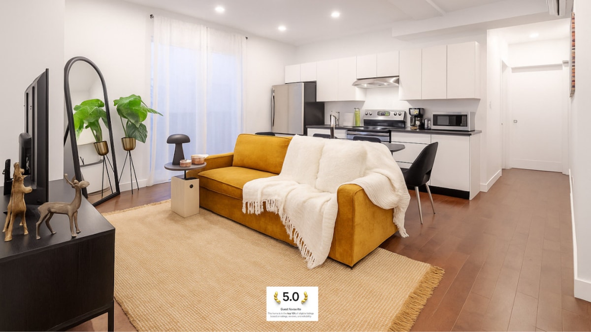 Soggiorna nel cuore della prestigiosa Golden Square Mile di Montréal in questo elegante appartamento con 1 camera da letto che può ospitare comodamente 6 persone. Con un letto matrimoniale e due divani letto, questa unità progettata con cura è perfetta per famiglie, viaggiatori d'affari o piccoli gruppi. Goditi i comfort moderni come una cucina completa con macchina Nespresso, lavastoviglie e forno a microonde, oltre a lavatrice/asciugatrice, aria condizionata split e una vasca da bagno per rilassanti ammollo.