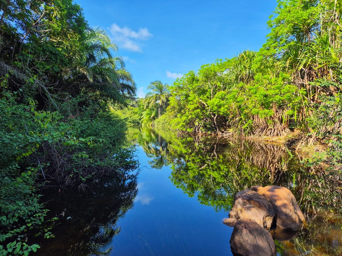 Venite a godervi giornate di tranquillità nel nostro incantevole e affascinante Village de Charme Casa Amarela, che abbiamo decorato appositamente per voi!! Il nostro condominio si trova in riva al fiume e a 100 metri dalla spiaggia, con accesso esclusivo dalla pista ciclabile. Il villaggio dispone di ottimi ristoranti, bar e caffè. Imbassaí si trova a 65 km dall'aeroporto di Salvador e a soli 10 km dalla splendida Praia do Forte.