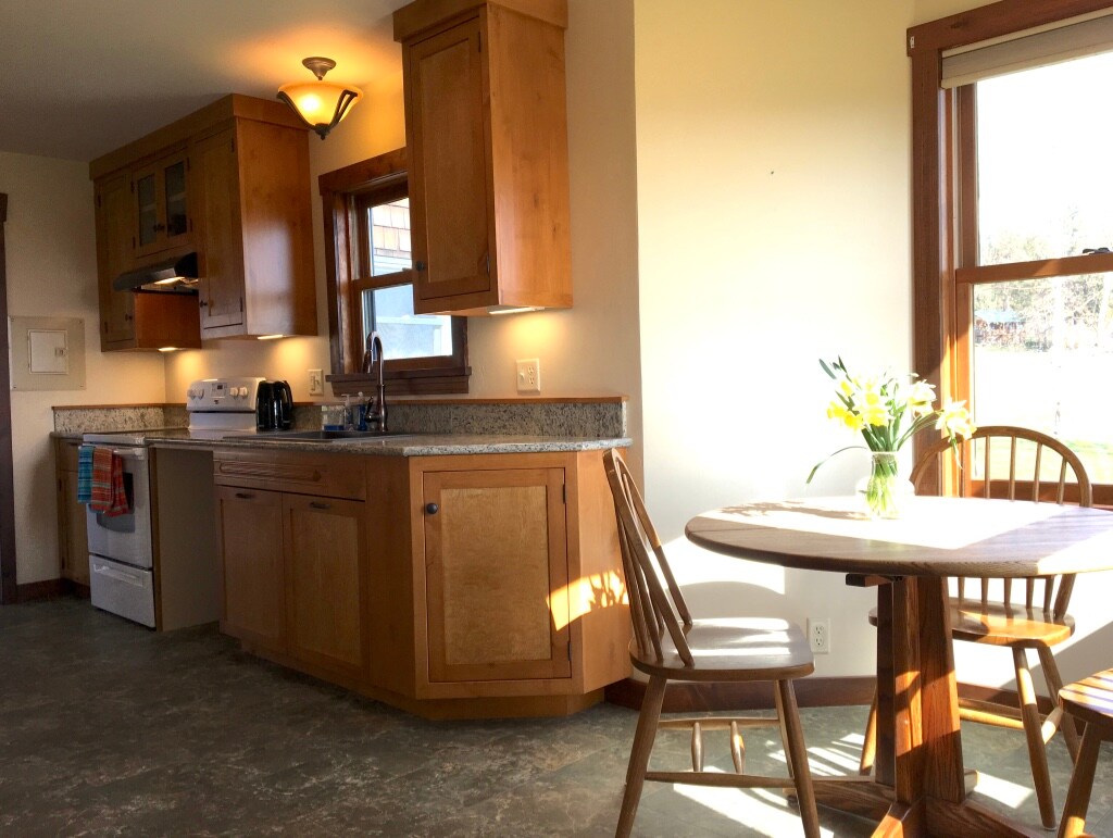 Rilassati e distenditi in campagna! Il nostro cottage di campagna con 1 letto e 1 bagno ha un fascino rustico ed è stato recentemente ristrutturato per includere tutti i comfort moderni che ti aspetti. La sauna è davvero bella e ha la caratteristica unica di una doccia a cascata. Goditi le splendide montagne Mission e l'ambiente simile a un parco, completo di torrente e salici. Non manca la fauna selvatica... cervi, falchi, gufi, oche e fagiani, per citarne alcuni, insieme ad alcune mucche e un cavallo che pascolano nel pascolo sul retro.