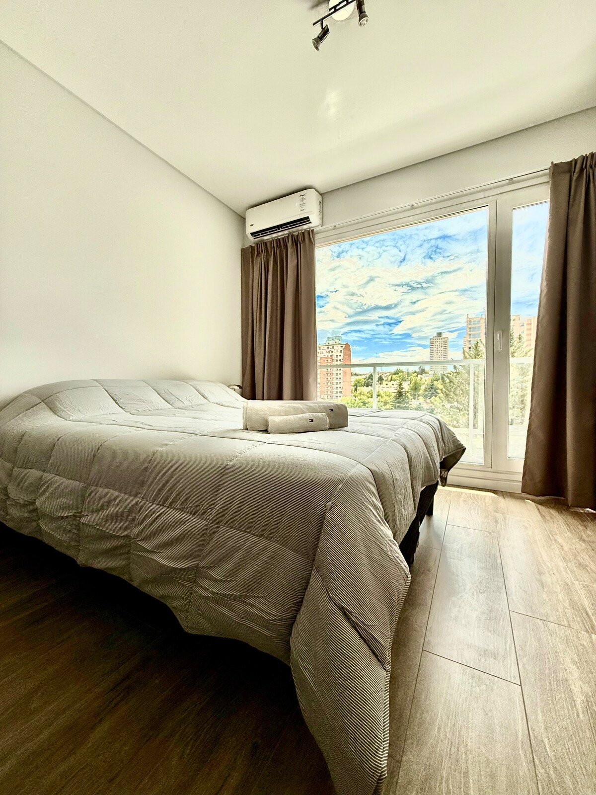 Hermosa vista a la ciudad. Todas las comodidades. Ideal para estancias cortas o largas. Espacio amplio, luminoso. Fácil acceso. Estamos para que tu estadía en Neuquén sea perfecta. El departamento esta cerca del rio Limay con su hermosa costa y vistas. El departamento cuenta con una cocina equipada con heladera, cocina de vitrocerámica, horno eléctrico, cafetera, utensilios de cocina y pava eléctrica. Ropa de cama incluida.
