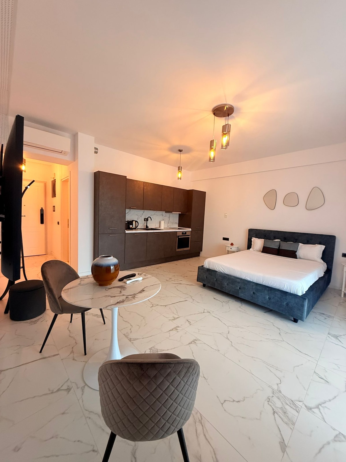 Monolocale moderno e accogliente a soli 5 minuti dalla spiaggia 3 Papuci (spiaggia di Zoom). Perfetto per le coppie, dispone di letto king-size, aria condizionata, angolo cottura, TV a schermo piatto e parcheggio privato. Situato in posizione ideale sul viale principale, con facile accesso a: • Supermercati (Mega Image – 3–5 minuti a piedi) • Ristoranti, caffè e bar sulla spiaggia • Farmacia e centro medico nelle vicinanze • Trasporti pubblici e accesso rapido al centro città Goditi un soggiorno tranquillo vicino al mare, con tutto il necessario per una vacanza confortevole.