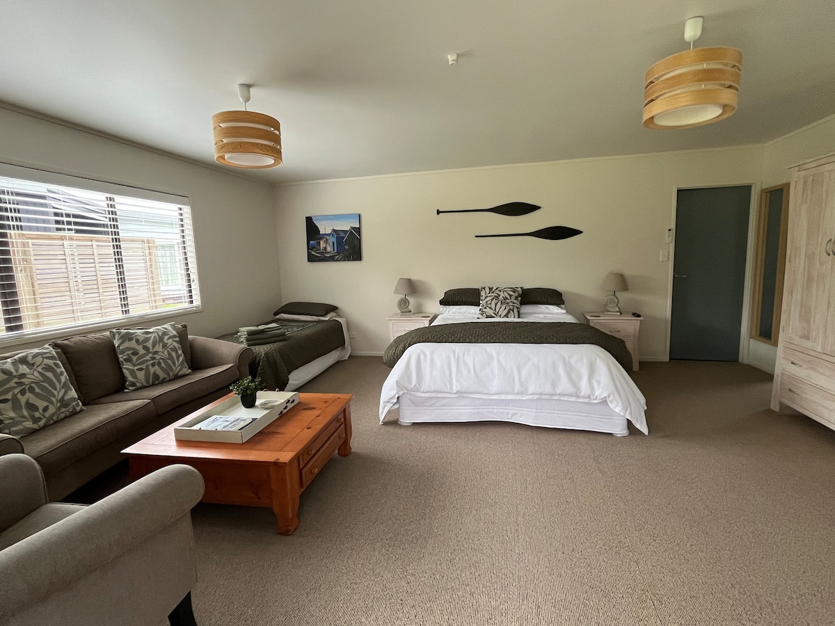 We have two spacious, comfortable studio units tucked privately away in a garden setting on our 1400sqm property close to Whitianga's upgraded town centre, marina, supermarkets and The Warehouse. Beach, estuary, cafés, bars and eateries are also handy - everything is approximately within a 10-15 minute walk. The units have ensuite bathrooms, tea and coffee making facilities, microwave, Freeview TV, free wi-fi, a queen bed, indoor-outdoor flow with a garden outlook. Guest parking on-site.