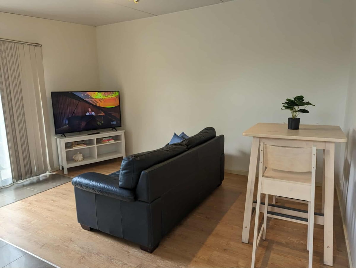 Goditi il nostro tranquillo appartamento in campagna, a soli 2 km dal centro della città. L'appartamento è pulito e moderno, il che lo rende il luogo perfetto per fermarsi e riposare. Goditi una cucina completa, una zona giorno aperta, una camera da letto privata con letto matrimoniale e un ampio bagno con doccia. L'appartamento è separato dalla casa principale e annesso al lato del nostro garage. Ti offre un'area privata, con un capanno da giardino per riporre tutti gli oggetti da esterno che hai.