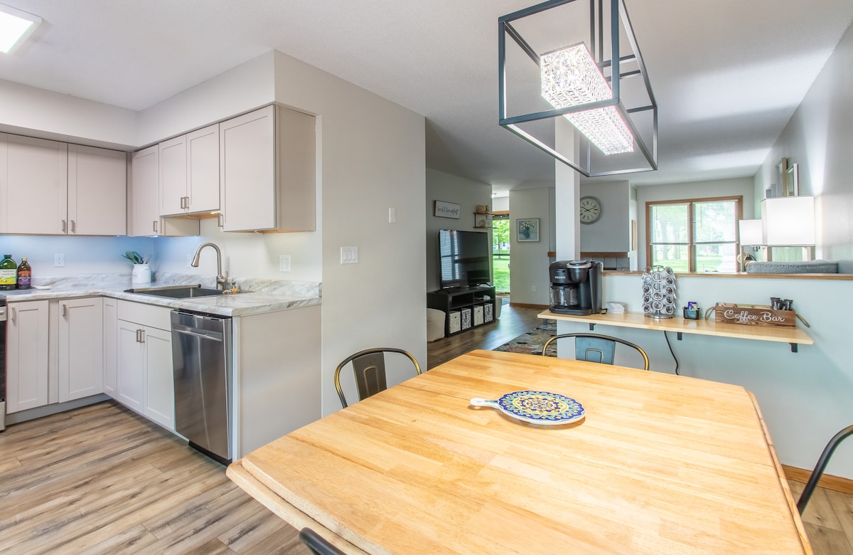 Iowa Nice Escape ~ moderno e spazioso duplex a tema Iowa a Tiffin - comoda posizione in una tranquilla strada senza uscita - parco, ristoranti e negozio di alimentari raggiungibili a piedi. Parcheggio in garage disponibile. A 5 minuti dal centro commerciale Coral Ridge A 15 minuti di auto dall'Università dell'Iowa A 25 minuti dalle Colonie Amana Vicino a più location per matrimoni, tra cui Bella Sala, Walker Homestead, Gathering Barn, Celebration Farm