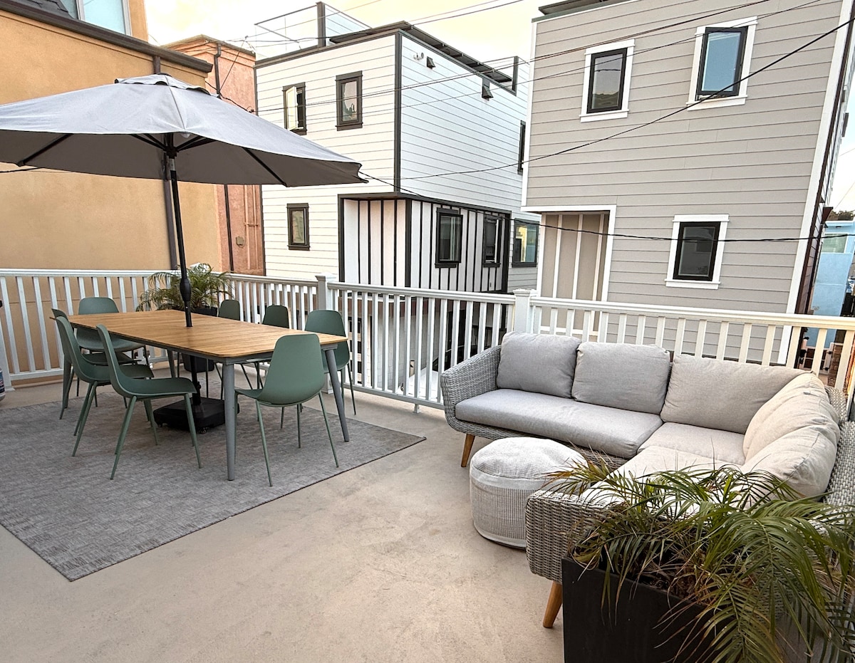 Rilassati nella nostra casa completamente attrezzata, splendidamente arredata, con 3 camere da letto e 3 bagni, nel centro della rilassata Imperial Beach. Assapora un bicchiere di vino mentre ammiri il tramonto dal balcone privato con vista sul molo e sull'oceano. Prepara un pasto gourmet nella cucina moderna e di lusso, o raggiungi a piedi le vivaci birrerie artigianali e gli ottimi ristoranti. Facile accesso al centro città, a soli 20 minuti dall'aeroporto! Accesso con tastierino, parcheggio privato gratuito in garage recintato, adatto ai bambini, WiFi ad alta velocità.