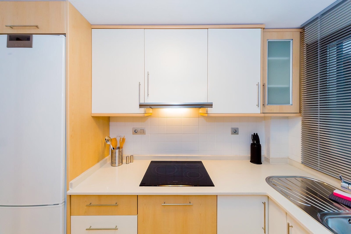 Accogliente appartamento in una nuova casa con piscina all'aperto, nel centro della località mediterranea di Calpe e a 100 metri dalla spiaggia di Arenal-Bol. Gli appartamenti sono dotati di aria condizionata e riscaldamento e di tutti i tipi di elettrodomestici necessari. Offre Wi-Fi ad alta velocità gratuito (fibra ottica) e parcheggio sotterraneo privato. I migliori ristoranti, caffè e negozi sono facilmente raggiungibili a piedi.