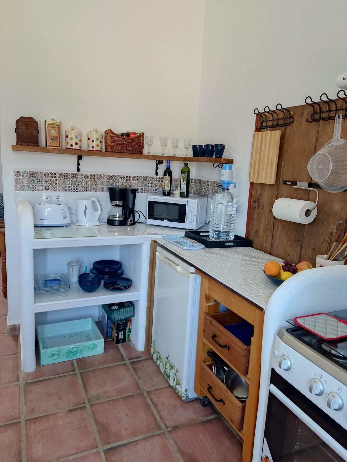 Cortijo Rural ad Agua Amarga (Capo di Gata) Il casolare si trova nel cuore di Cabo de Gata, a 2 minuti di auto da Agua Amarga e a 10 minuti da Carboneras. La casa viene sempre affittata completa, ed è composta da due appartamenti indipendenti e una cucina comune. Gli appartamenti e la cucina si affacciano su un ampio portico che collega le tre stanze. L'appartamento 1 dispone di due camere da letto con letto matrimoniale, un soggiorno e un bagno. L'appartamento 2 dispone di due camere da letto, 1 con letto matrimoniale, altre due letti e un bagno.