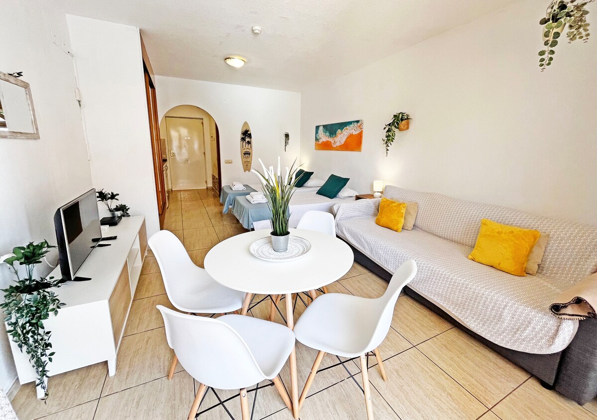 Un accogliente appartamento con terrazza in un luogo tranquillo e silenzioso, situato sul mare vicino alla bellissima baia di Montaña Amarilla. Posto auto privato incluso nel prezzo, WiFi veloce (lavoro a distanza possibile), SmartTV. Vicino al supermercato e alla fermata del bus. C'è una piscina con un bar e una per bambini. Offriamo gratuitamente lettino da viaggio per bambini, seggiolone e giocattoli (ad es. Duplo). Appartamento ben attrezzato.