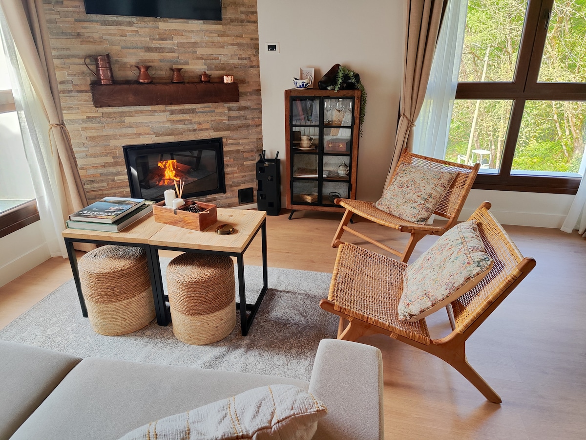 Cottage a 7 posti, decorato con un sacco di coccole e infiniti servizi: Cucina/sala da pranzo completamente attrezzata con uscita sul portico con zona pranzo all'aperto e giardino privato. Soggiorno con camino a legna, smart TV 45", wifi e Netflix gratuito e divano letto da 150 cm. Due camere da letto matrimoniali, una singola e 3 bagni completi. Tutte dotate del massimo comfort: materassi e cuscini di alta qualità, biancheria da letto e da bagno; vasca senza idromassaggio; servizi gratuiti, ecc.