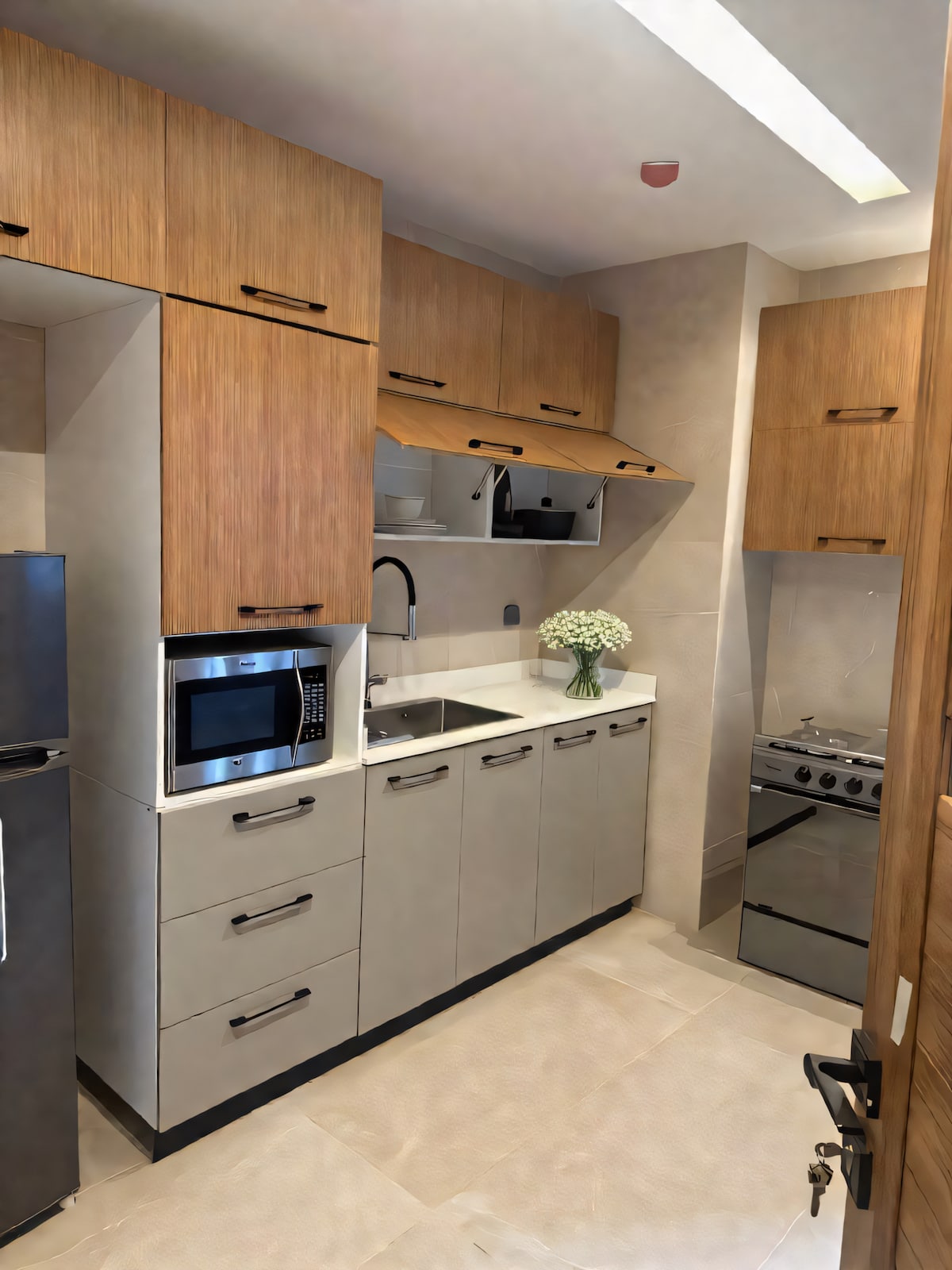 NÍMA HOME apre le porte di un eccezionale appartamento di lusso con una camera da letto (T2), vicino a tutti i servizi! Situato a Cocody Angré – 8° Tranche, questo appartamento combina un design raffinato con un comfort assoluto: una spaziosa camera da letto con bagno privato, un bagno per gli ospiti, un ampio soggiorno, una cucina completamente attrezzata e una terrazza. Goditi i nostri servizi esclusivi: trasferimenti aeroportuali di andata e ritorno e opzioni di ristorazione à la carte, disponibili su richiesta. Il tuo soggiorno perfetto ad Abidjan inizia qui.