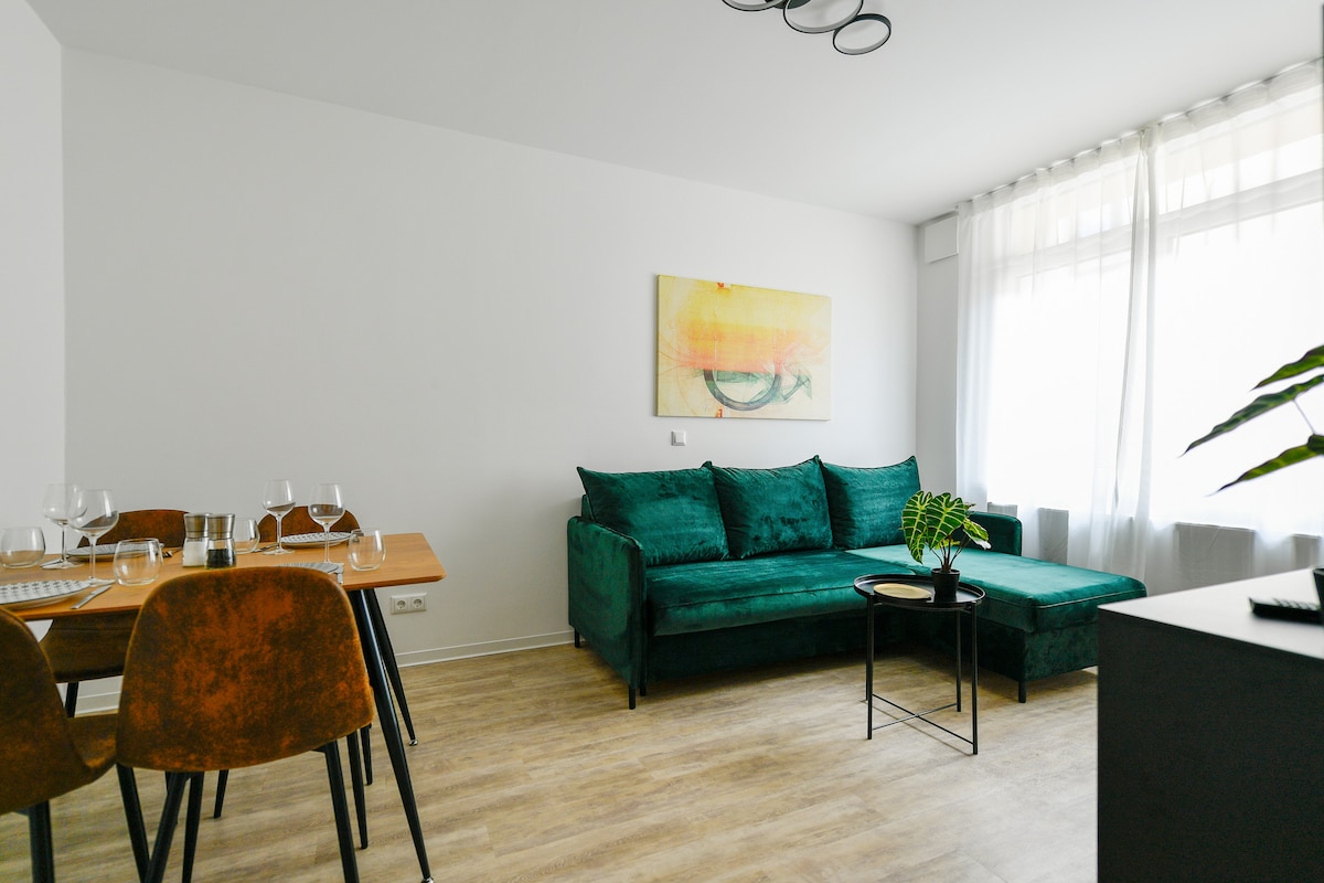 Benvenuti nell'appartamento monolocale arredato con gusto non lontano dall'università. L'appartamento offre tutto il necessario per un ottimo soggiorno breve o lungo a Cottbus: -2 letti singoli- cucina completamente attrezzata - tavolo da pranzo, internet super veloce - lavatrice - Smart TV+balcone