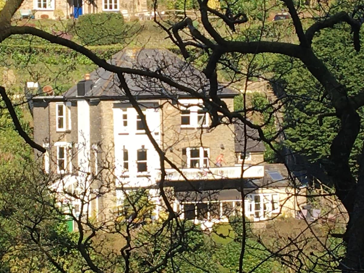 Un elegante e spazioso appartamento al 1° piano con vista mozzafiato sulla Lyn Valley. Lynton dista solo 10 minuti a piedi lungo una bella passerella nel bosco. C'è una camera matrimoniale con bagno interno e un lussuoso letto king-size. C'è anche una camera doppia con 2 letti singoli di alta qualità. C'è una cucina/soggiorno open space con tavolo da pranzo vicino alla finestra a golfo che si affaccia sulla valle. È presente anche un bagno contemporaneo con vasca e doccia. Ingresso privato, parcheggio per 1 auto e zona pranzo all'aperto.