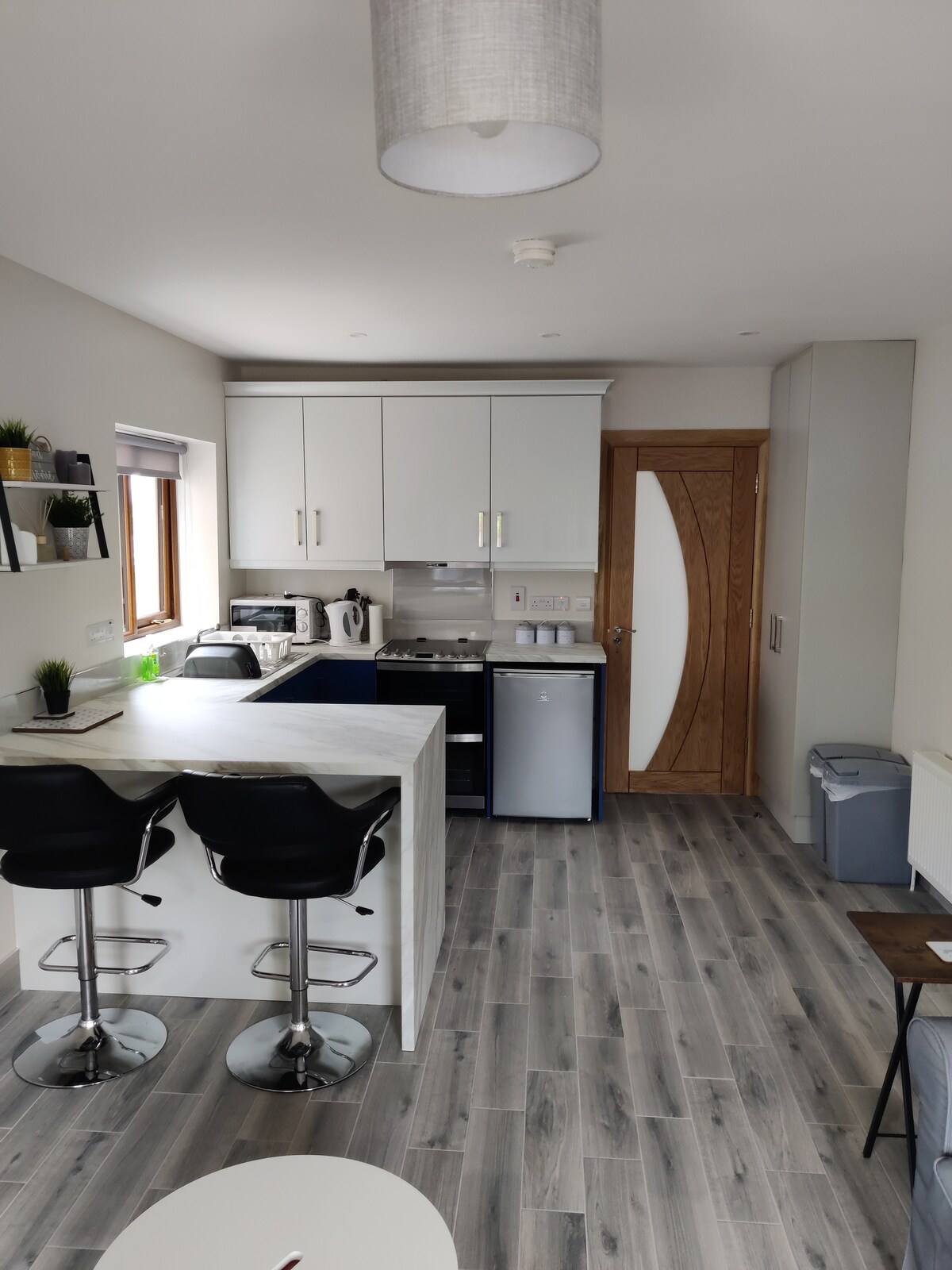 Splendido rifugio di campagna. A 15-20 minuti dalla spettacolare costa settentrionale. Nuovissimo monolocale al piano superiore in una corsia privata con viste mozzafiato sulla Bann Valley, dove è possibile fare varie passeggiate in campagna. Accesso indipendente e spazio esterno con zona pranzo all'aperto e barbecue Arredamento moderno a pianta aperta con bagno separato con doccia e servizi igienici. Letto king-size e divano letto matrimoniale, quindi potenzialmente adatto a 3-4 ospiti. Angolo cottura con forno a microonde, tostapane e bollitore. Su richiesta è disponibile un piano cottura portatile.⁶